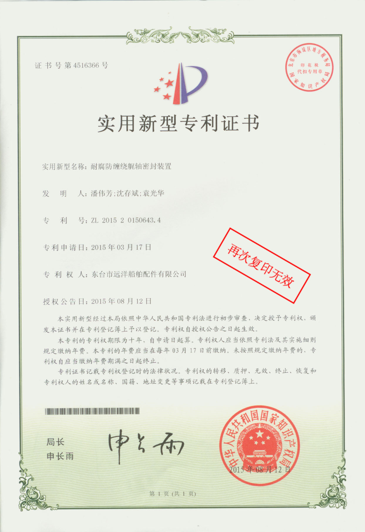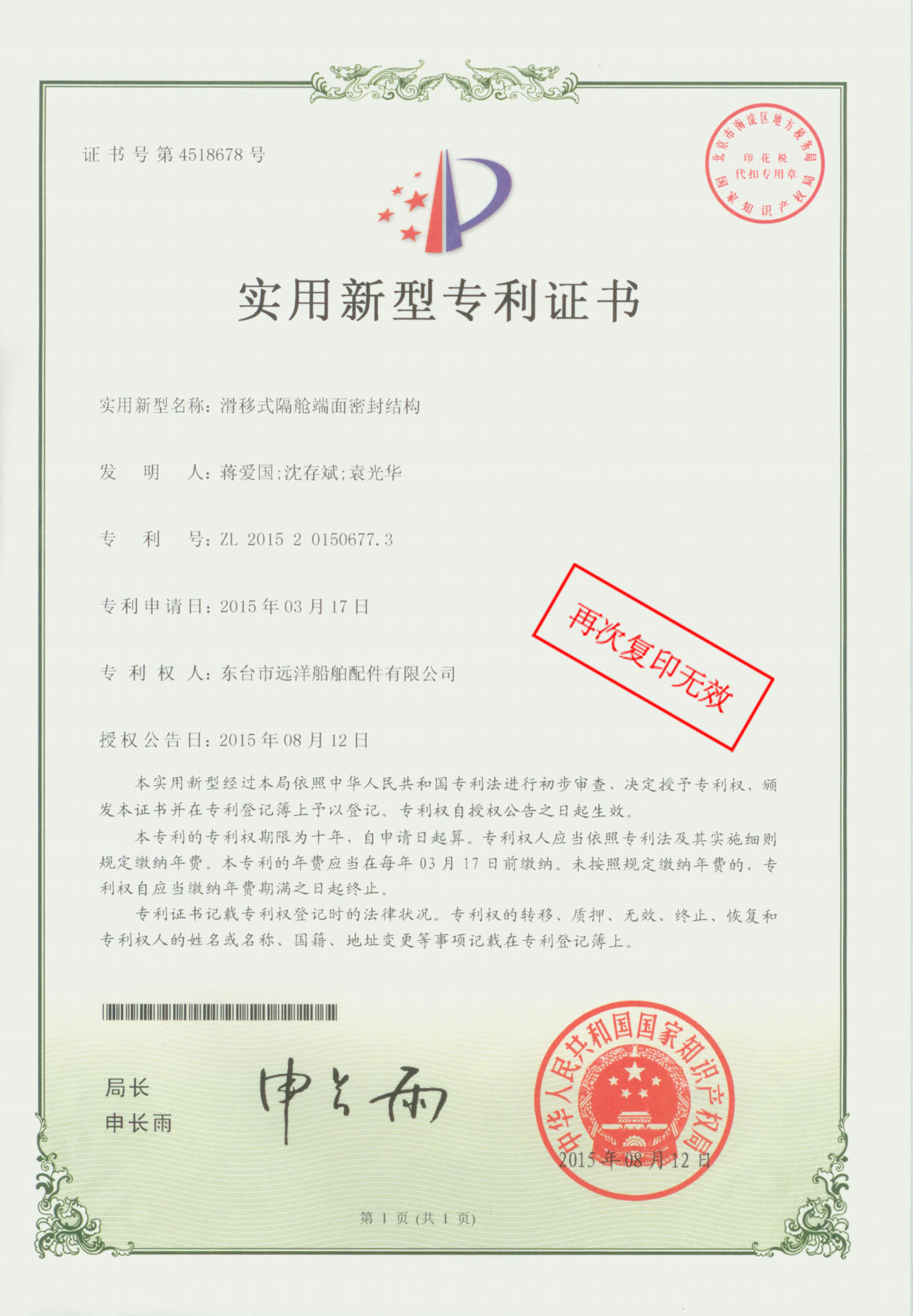 专利证书